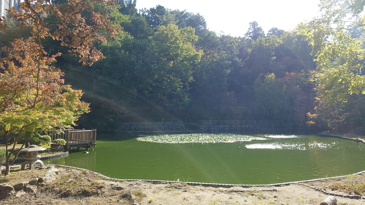 一周できる道やベンチなどが整備されていますので、是非一周してみてください。大学内とは思えない自然を体験できます。