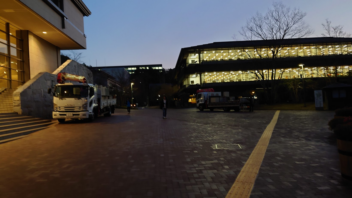 実際青色の建物から天文台に行くときって、「エレベーターで3Fに出たところが地下1Fの建物があって、その建物のエレベーターで4Fに出たところが1Fの建物があって、その建物の5Fに出たところに天文台の1Fがある」みたいなことをするので、だいたいビル12Fぶんくらいの高低差はあります。