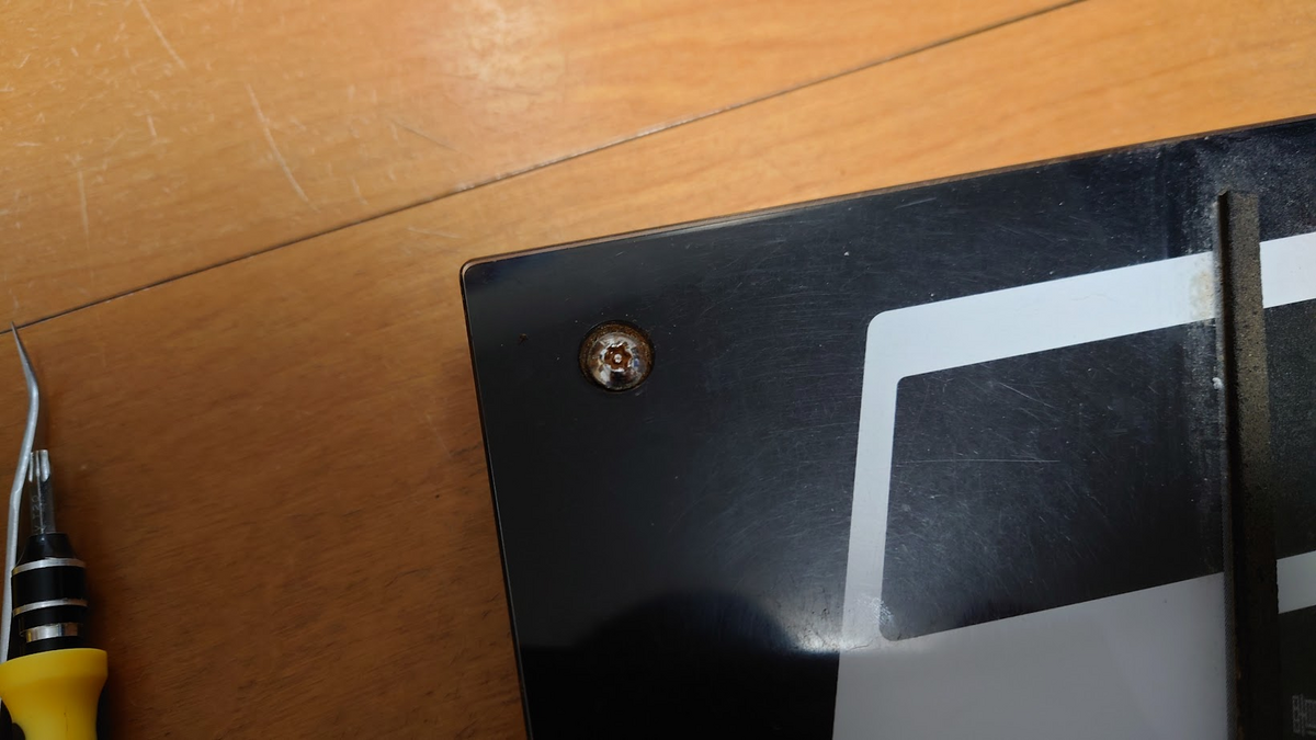 ここに特殊ネジ(トルクスネジ)があります。T20です。